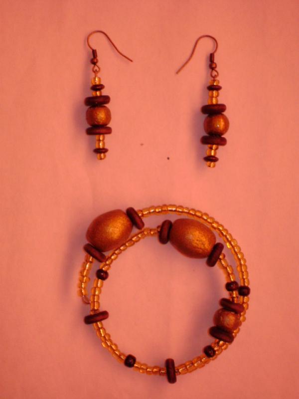 set bratara si cercei din lemn pictat manual si lacuit