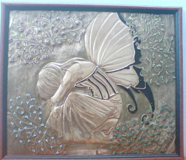 tablou unicat lucrat manual pe foita de cupru 33x28