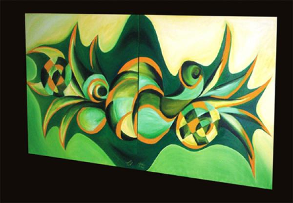 pictura abstracta,marime totala 160x80cm (sunt 2 piese de 80x80cm), original,semnat 2006,nu necesita rama,ulei pe panza