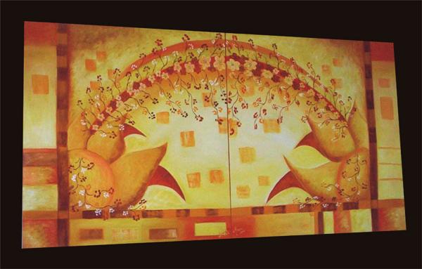 pictura abstracta,marime totala 160x80cm ( sunt 2 piese de 80x80cm),original,semnat 2006,nu necesita rama,ulei pe panza