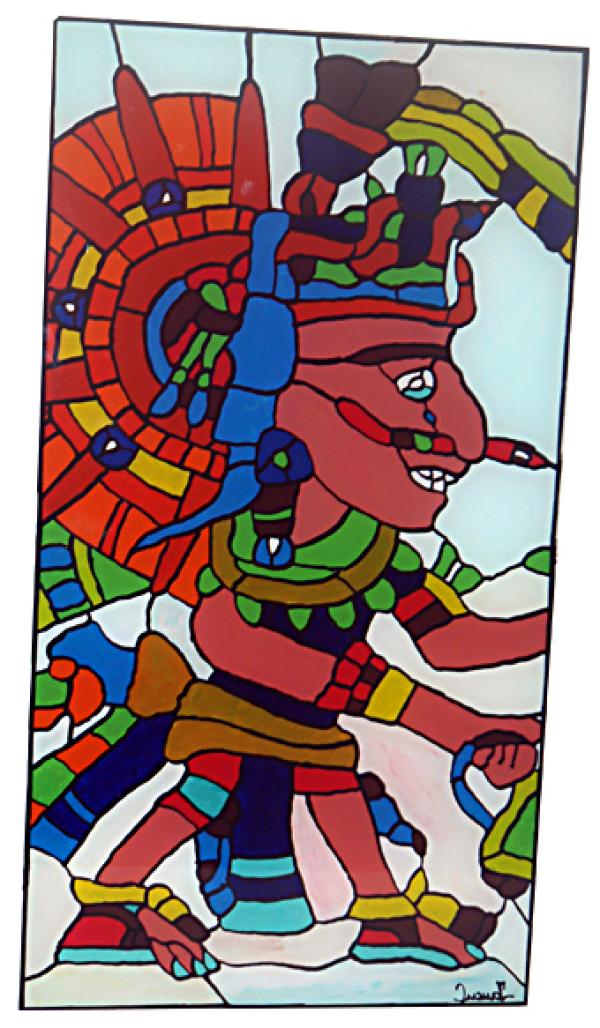 pictura pe sticla, pe reversul sticlei, culori acrilice, dimensiuni 20x37 cm