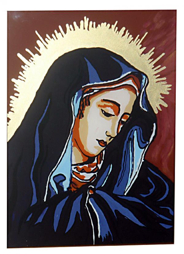 pictura pe sticla, pe reversul sticlei, culori acrilice, dimensiuni 17x24 cm