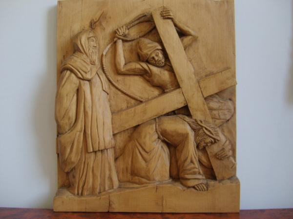 Basorelief, 40 x 48 cm, lemn de tei ceruit.