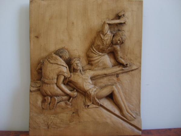 Basorelief, 40 x 48 cm, lemn de tei ceruit.