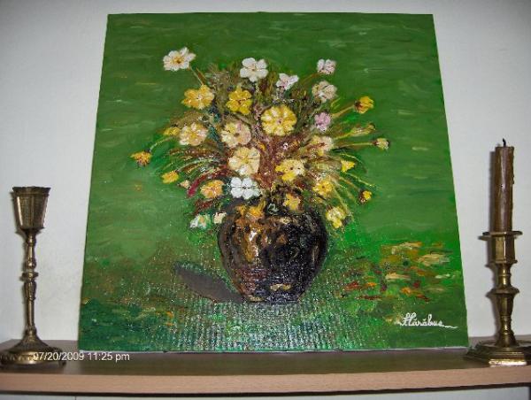 Pictura in ulei pe panza (o lucrare deosebita), abstract modern, titlul tabloului: Flori de munte, semnat S. Carabus. dimensiune 50 x 50 cm, executata pe sasiu cu panza profesionala import Italia (gr. sasiu 2 cm), lucrat in vopsele rusesti. Nu necesita inramare !! , pentru intrebari va astept aici sau la telefon 0764503307, multumesc !!