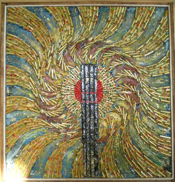 Tehnică Mixtă (carton, ulei, fir de pai de grâu), 32x30 cm