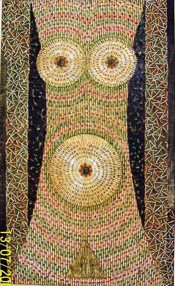 Tehnică Mixtă (carton, ulei, fir de pai de grâu, altele), 120x77 cm