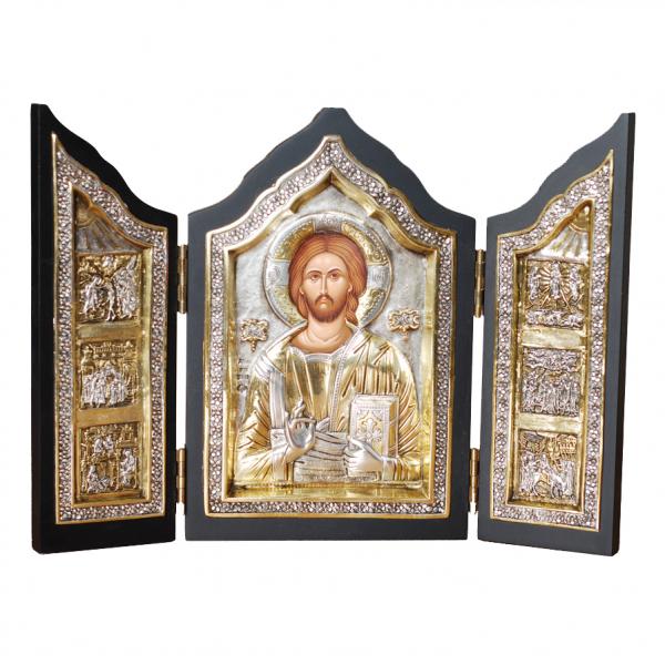 Triptic - Copie fidela dupa icoane Bizantine din secolul XIV, piesa este executate in Grecia. Icoana este pictata manual, lucrata in argint 925 pe suport din lemn si partial aurita cu Au. 24Kt.