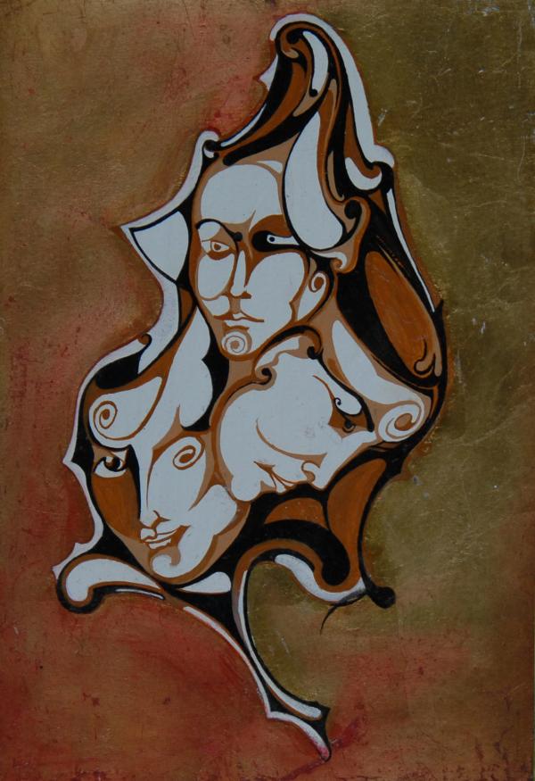 20/30;ulei,foita aur/carton panzat. Subiect:personalitatea multipla.