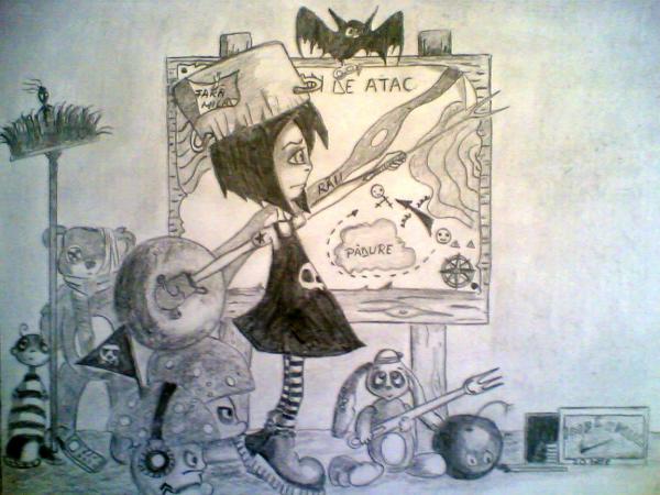 A3 size...este facut cu ajutorul creioane;er B3,4,5,6 ...reprezinta planul de atac al unui copil dornic de razbunare