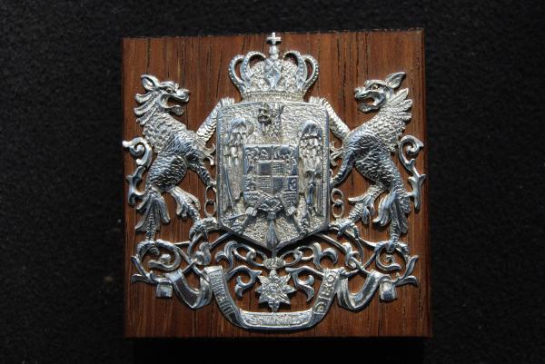 Lucrare executata manual din Argint fin (999,99/1000)-traforaj, gravura si basorelief miniatural-dimensiuni:62x62x4 mm., fixat pe suport de lemn de Bambus.