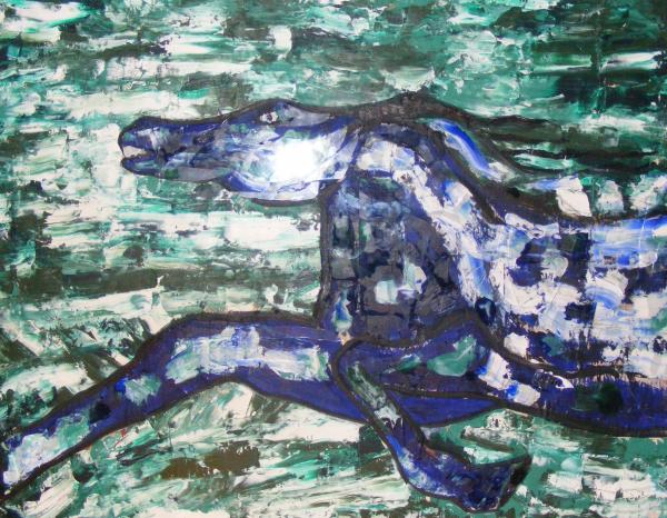 Calul de sticla care se ineaca (The horse of glass drowning)-44,5 x 57,5 (Ulei pe panza & bucati de sticla) – oil on canvas and pieces of glassPret actual : 1500 €