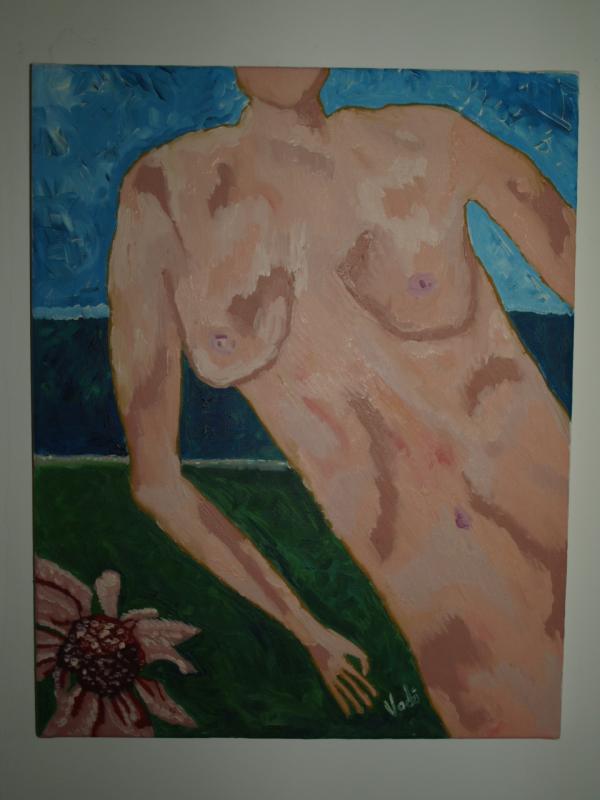Nud cu floare. Lucrare oil on canvas (vopsea ulei pe panza). Semnata centru dreapta jos. Necesita rama. Marime 40cm/50cm