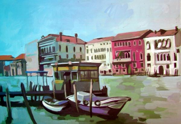 Peisaj din Venetia, 30x45 cm vinilic pe hartie inramata