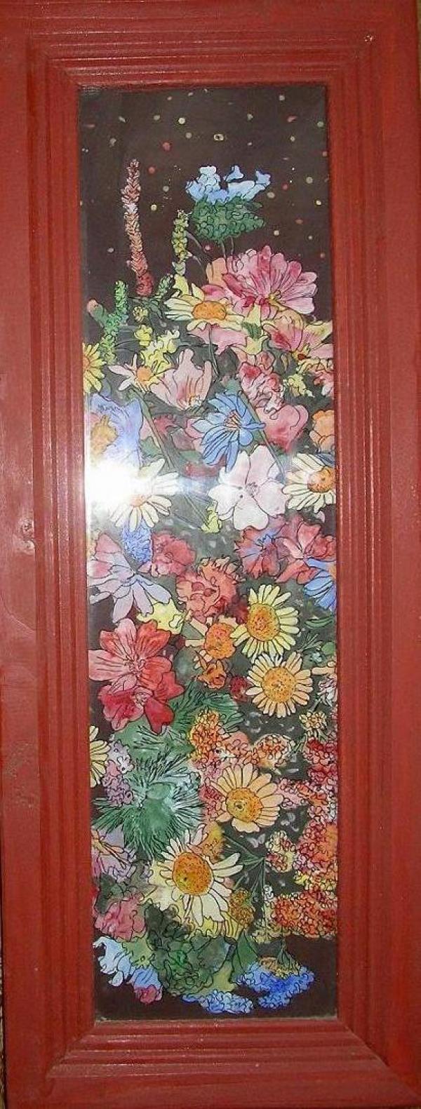 Pictura pe sticla,tehnica traditionala, 20x40 cm, inramat, original, semnat