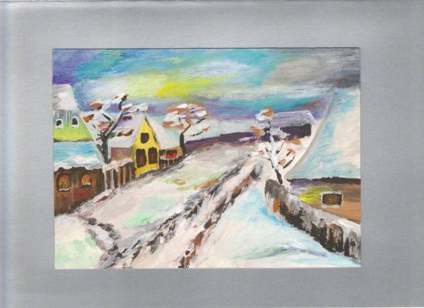 felicitare pictata in tempera aplicata pe carton special