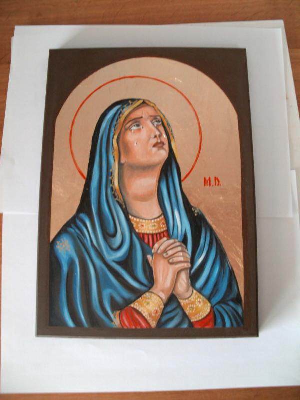 Pictura pe lemn in ulei cu foita aurie,argintie,vernisata,stil antic Dimens: 30 x21 cm