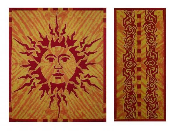 2 tablouri textile realizate dupa tehnica quiltului din bumbac.Sunt quiltuite manual Dimensiune 1=122/140 si 2=134/56 cmPret actual : 300 €