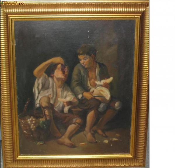 replica dupa un tablou celebru al lui bartolome esteban murillo copii mancand fructe tabloul este nesemnat. ulei pe panza si prezinta mici defecte. Pictura este inramata. Modalitati de livrare si plata: LIVRARE: - Predare personala in Galati PLATA - La predare Dimensiuni: 0,55 x 0,78