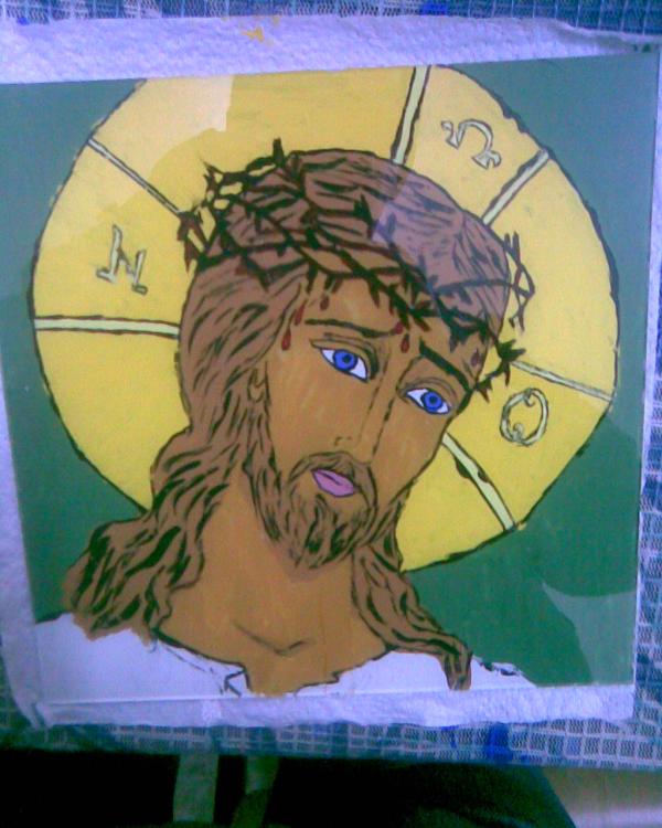 icoană pictată pe sticlă dimensiune aprox. 20/20cm