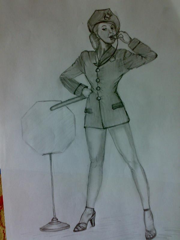 reproducere in creion dupa lucrarea lui Gil Elvgren \"a real stopper\" 1949