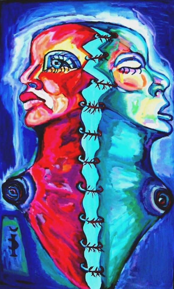 Cele doua stari ale mintii umane; ulei/pinza; 130 x 60 cm