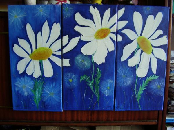 Trei tablouri pictate in ulei pe panza,alcatuind unul singur.Fiecare de dim.20x40cm.