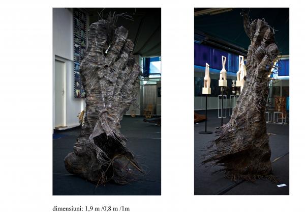 Lucrarea este realizata din sarma de fi 4 mm , punctata una langa cealalta, pana formeaza imaginea unui element anatomic( picior) avand dimensiunea de 2 m, creandu-i astfel prin sarma imaginea microscopica a epidermei,in geneza.
