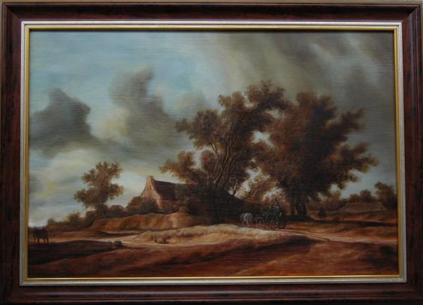 40 x 59 cm plus dimensiunea ramei. Tablou realizat pe principiile picturii flamande traditionale, pe panza de in cu solutii si culori olandeze si nemtesti de prima clasa.