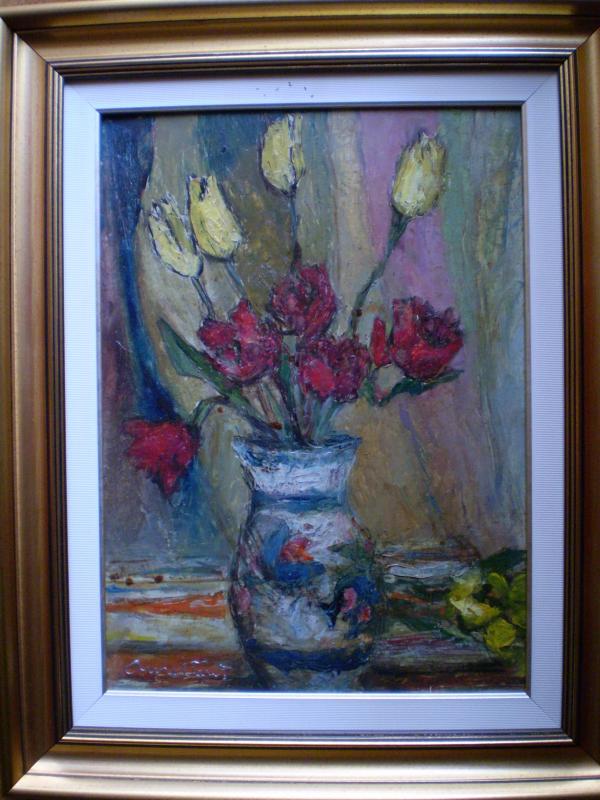 PICTURA IN ULEI PE CARTON ,SEMNAT IN STANGA JOS DIM FARA RAMA 27X37