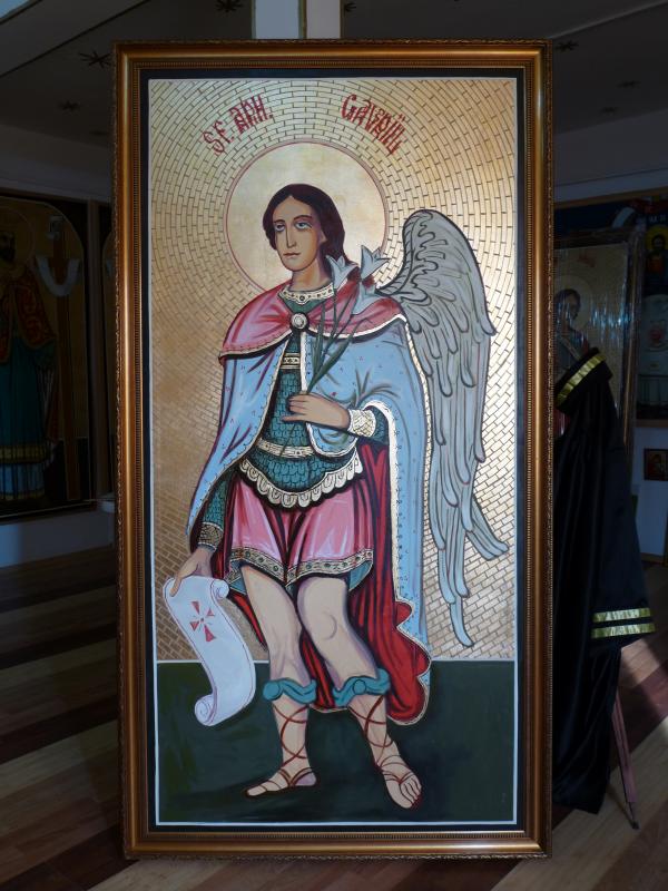 pictura realizata in culori de ulei cu foita de aur pe panza dimensiune: 2000x1000cm