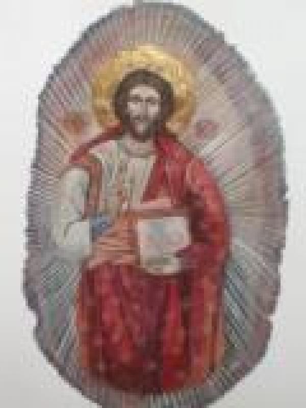 Icoana lucrata pe hartie prelucrata manual in relief ,cu foita de aur.
