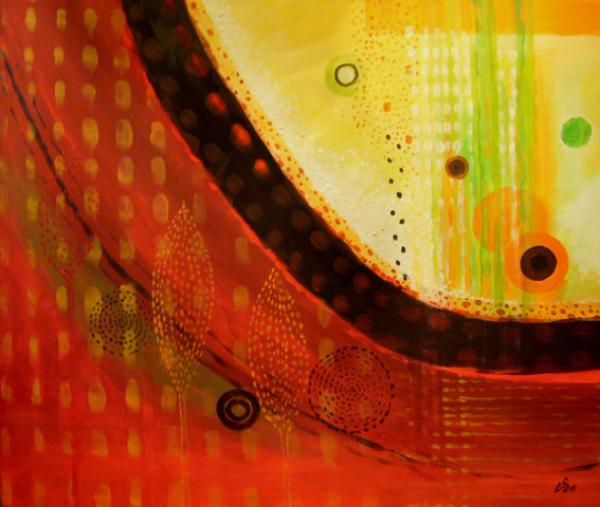 Stil semi-abstract,culori:rosu,orange,verde kiwi.