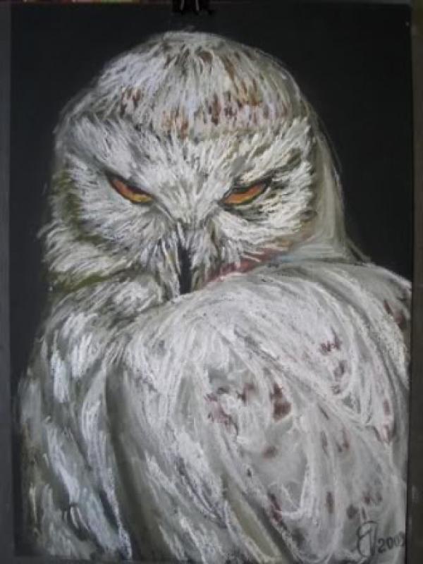 Lucrare in pastel pe carton negru fixata cu un vernis specific.