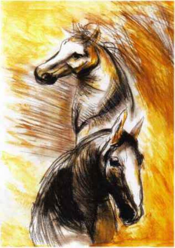 Lucrare in tehnica mixta pe carton ,vernisata cu un vernis specific dupa uscarea totala.