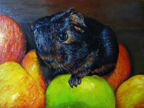 Tabloul reprezinta unul din animalutele noastre (un porcusor de guineea) cand era mic.