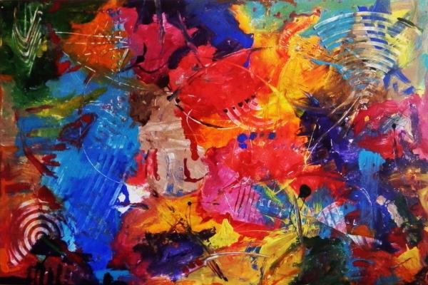 Tablou realizat intr-un mod spontan cu ajutorul acrilicelor gata sa dea viata spatiului dumneavoastra favorit!