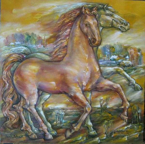 TABLOUL:\'\'CAI IN GALOP\'\',ULEI/PINZA,Dim;55/55cmPret actual : 500 €