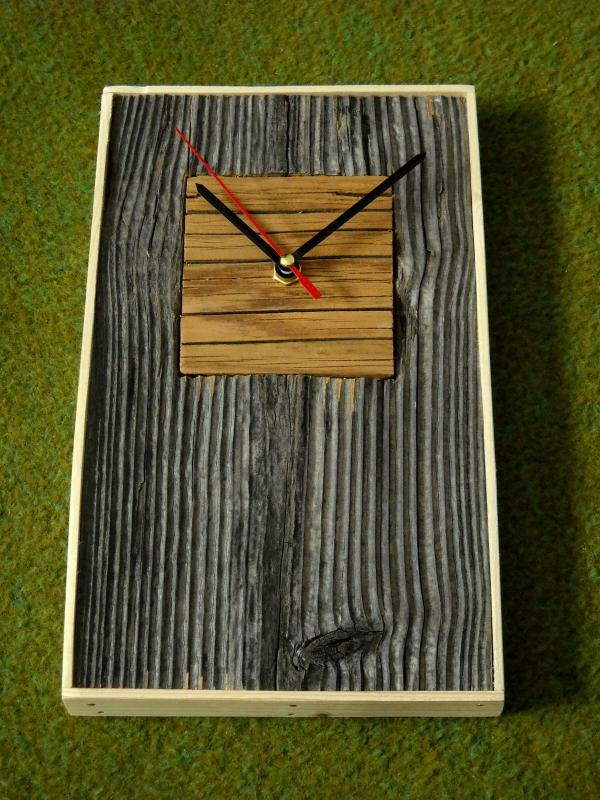 ceasul este realizat din lemn vechi.culoare contrast,textura