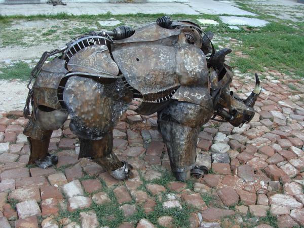 Lucrare in metal terminata in 2012, artistul este absolvent al studiilor de Master in cadrul Universitatii Nationale de Arte Bucuresti. Reprezinta un rinocer, are influente post-moderniste si steampunk, este realizata in tehnica tablei martelate, texturata manual si tratata cu oxizi de metal pentru patina vibranta. Cornul este natural, a fost polisat si tratat. La cerere, lucrarea poate capata valente utilitare prin posibilitatea actionarii farului. Lucrarea a fost expusa in luna Iunie la Galeria de Arta Orizont, Bucuresti. Se preteaza spatiilor deschise (gradini, tarase), precum si incaperiilor generoase (sedii de firma, puburi, cluburi) etc. Lucrarea are dimensiunile L 210 / l 80 / h 110 cm, pentru cei interesati poate fi vizionata in Bucuresti.