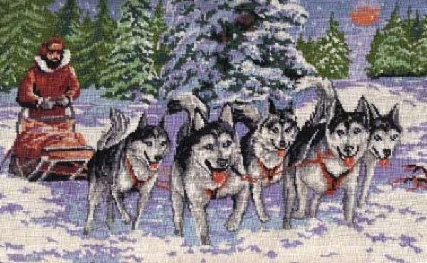 Expeditie in Alaska 20X30 Lucrat in punctul clasic Fara defecte Nu este inramat
