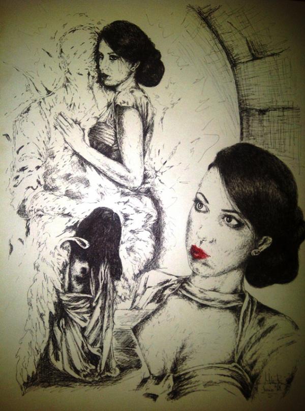 fara descriere dimensiuni: 50x70cm tus pe carton , inramat