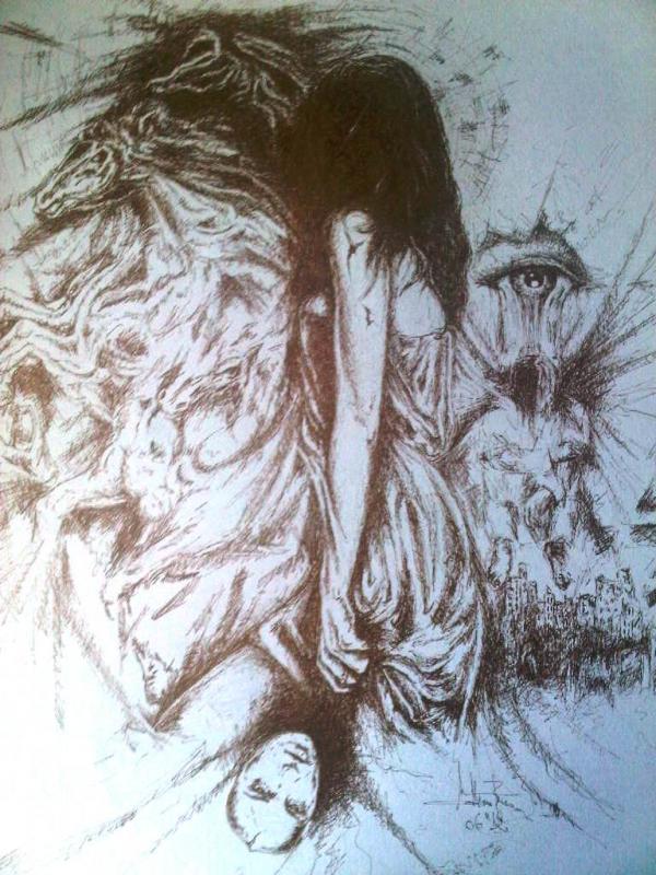 fara descriere dimensiuni: 50x70cm tus pe carton , inramat