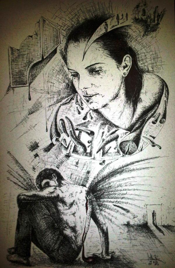 fara descriere dimensiuni: 50x70cm tus pe carton , inramat
