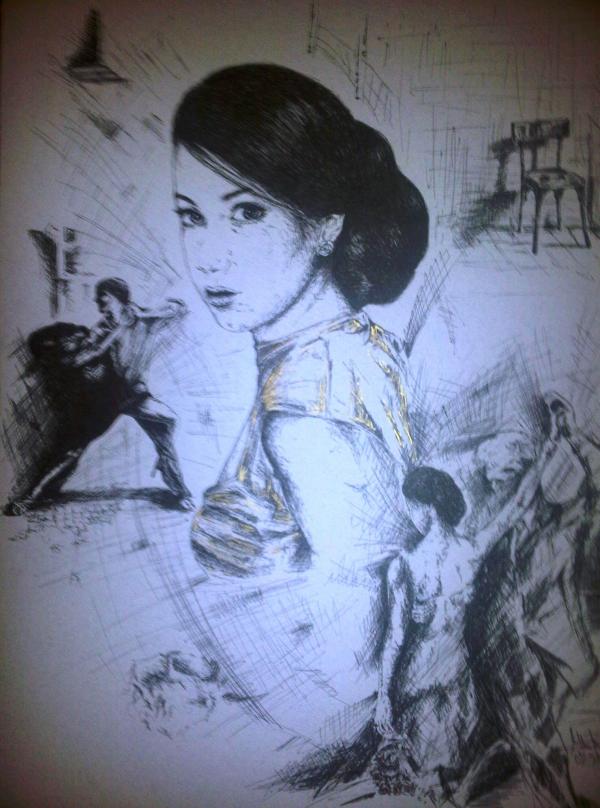 fara descriere dimensiuni: 50x70cm tus pe carton , inramat
