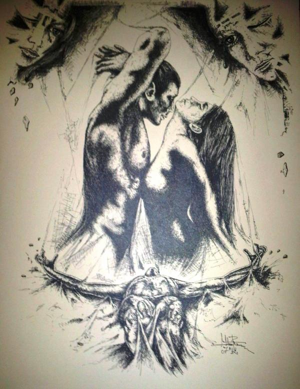 fara descriere dimensiuni: 50x70cm tus pe carton , inramat