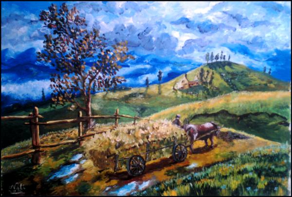 pictura in ulei pe carton , dimensiunea este de 50/35 cm