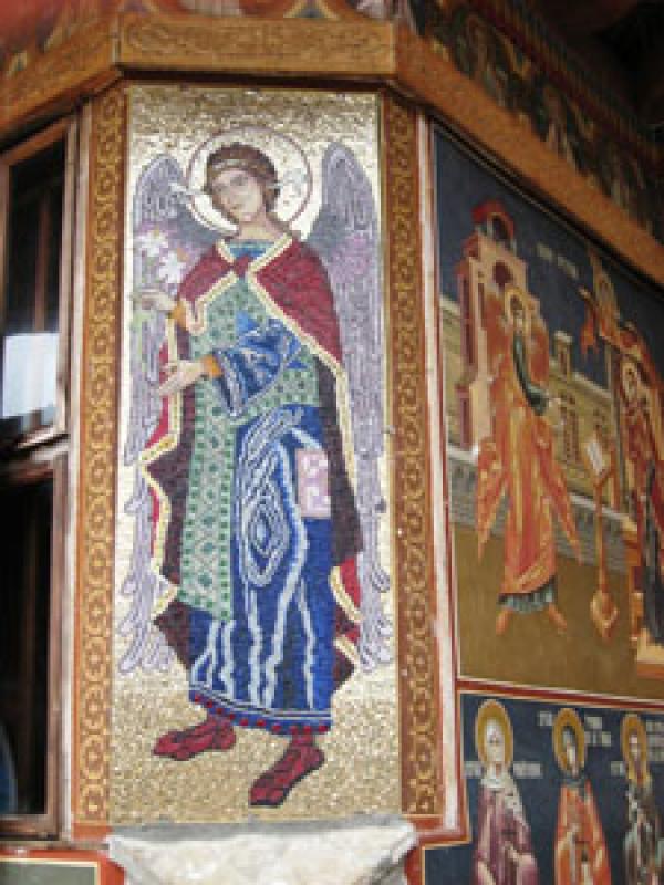Icoana realizata in tehnica micromozaicului, din sticla Murano si fonduri de aur 24kPret actual : 1500 €