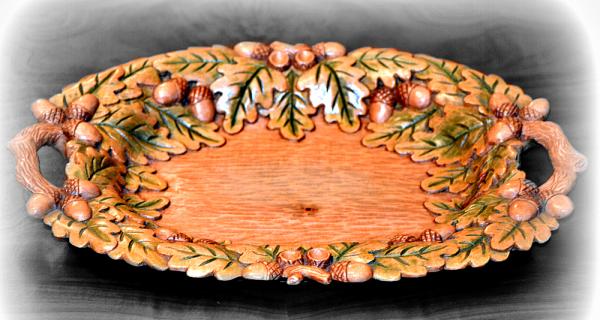 Tava sculptata in lemn de paltin, pictata cu lac colorat. Dimensiune 40x28x4cm Produs Unicat!