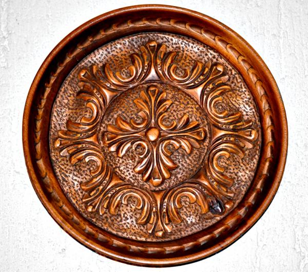 Farfurie decorativa sculptate in lemn de cires. An-1983 Dimensiune farfurie: 23x23cm Produs Unicat!